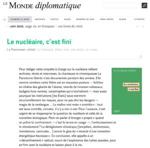 « Livre du mois » dans le monde diplomatique – juin 2020