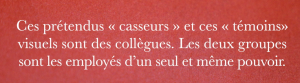 Interrogé par téléphone sur les blessures éventuelles subies par les manifestants lors d’affrontements avec la police à Nantes, le 1er novembre, un porte-parole du syndicat policier Alliance a répondu en ces termes : « Quand on est policier, on est du côté des policiers, pas du côté des ennemis. »