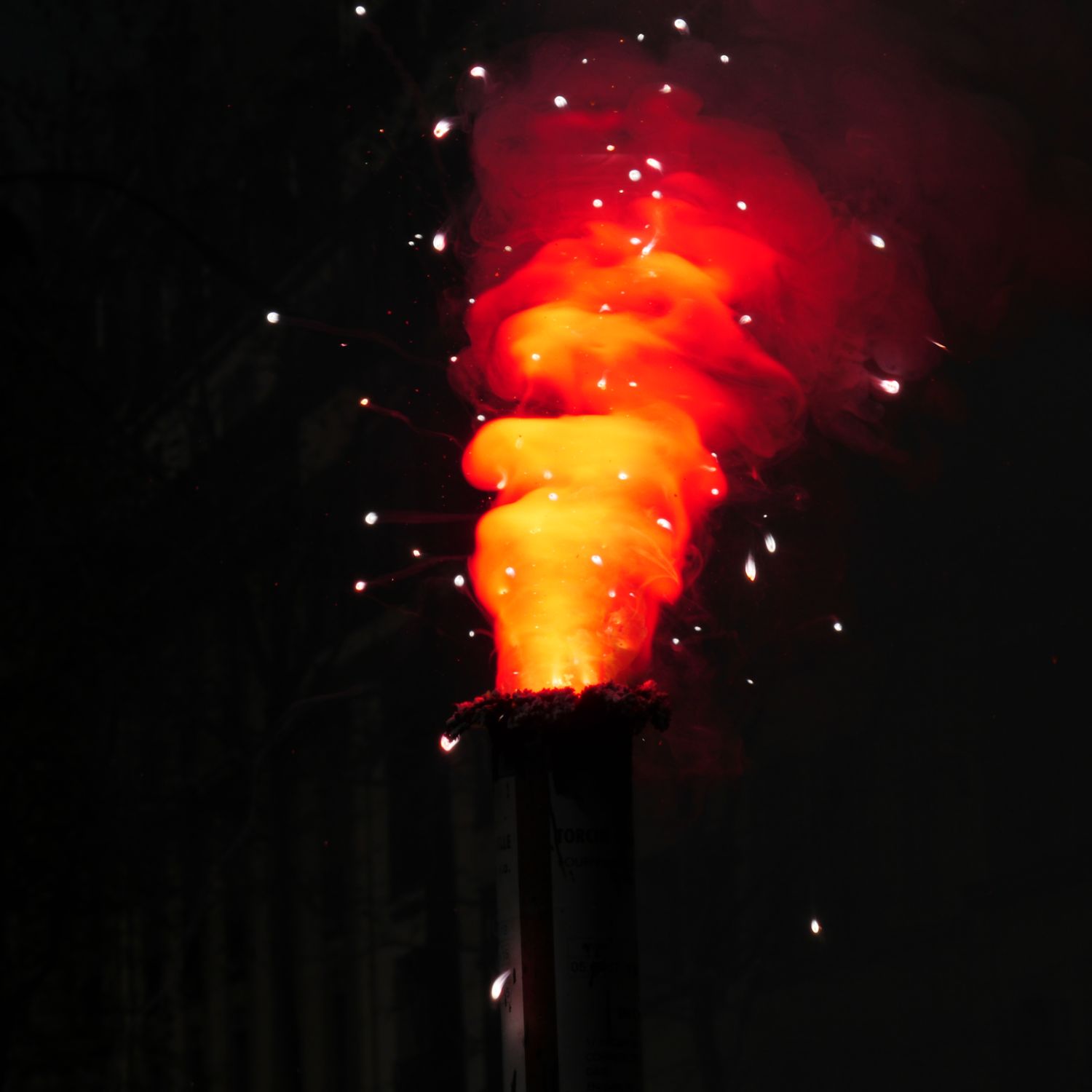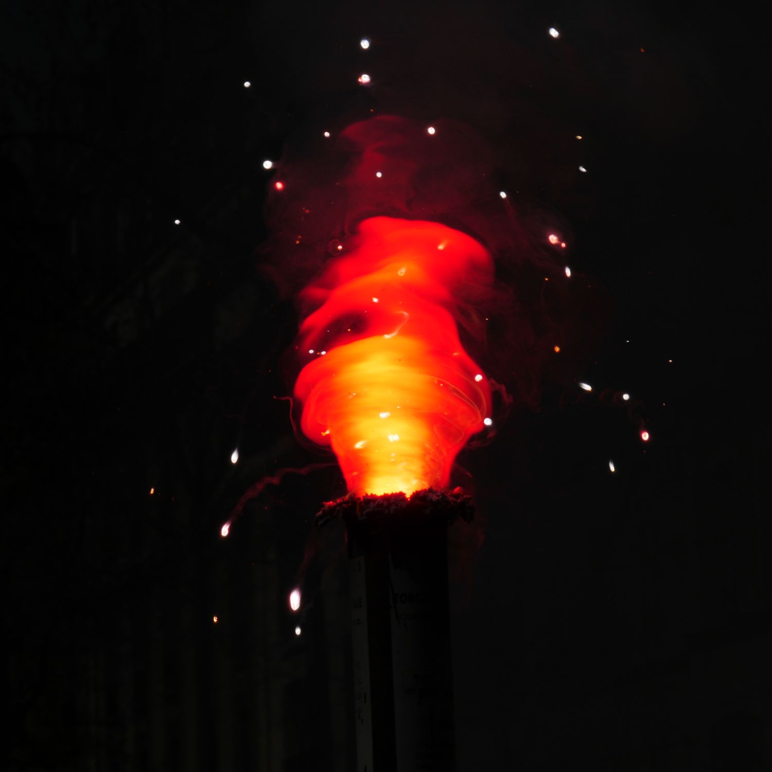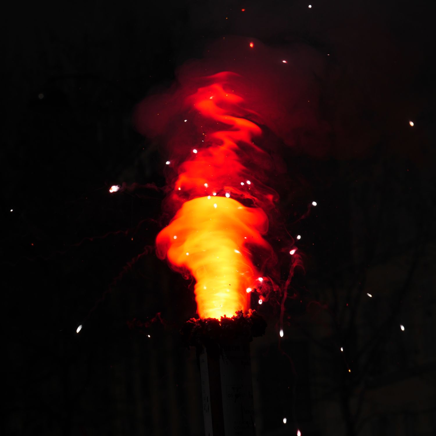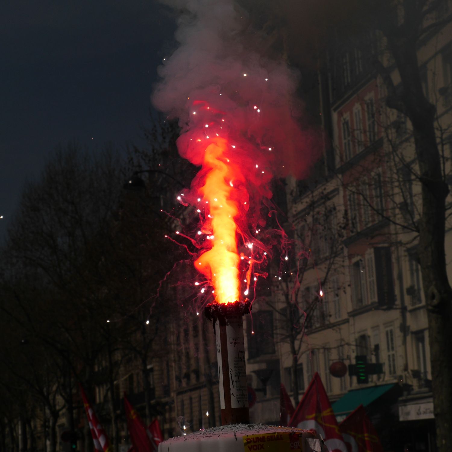 Il faisait un soleil magnifique sur le boulevard du Montparnasse. Soudain, j’ai approché mon appareil photo d’un fumigène et le monde s’est éteint. Dans le cadre, j’ai vu danser un génie rougeoyant entouré de gouttes de lumière. Un instant plus tard, un manifestant a frotté le fumigène et le génie est rentré dans sa lampe. Planche contact.